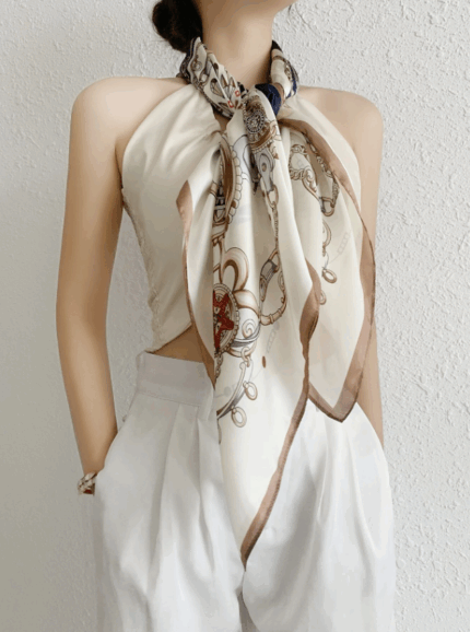 鏈條印花方巾|優雅方形時尚 2條