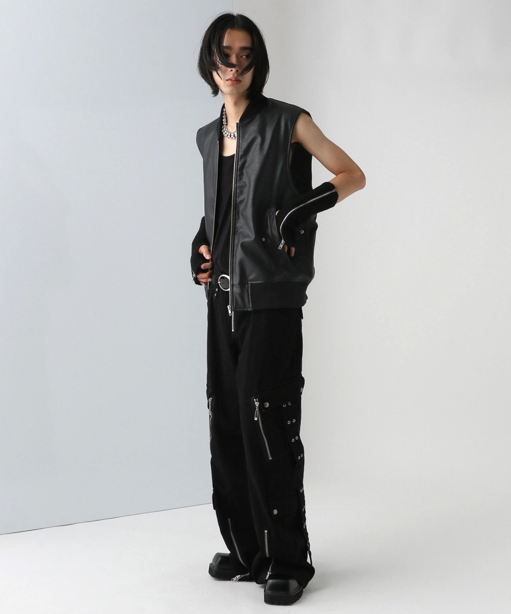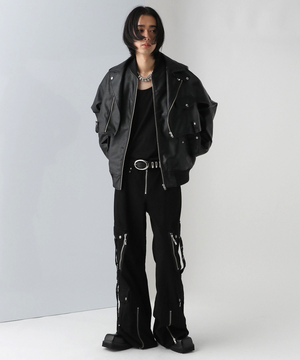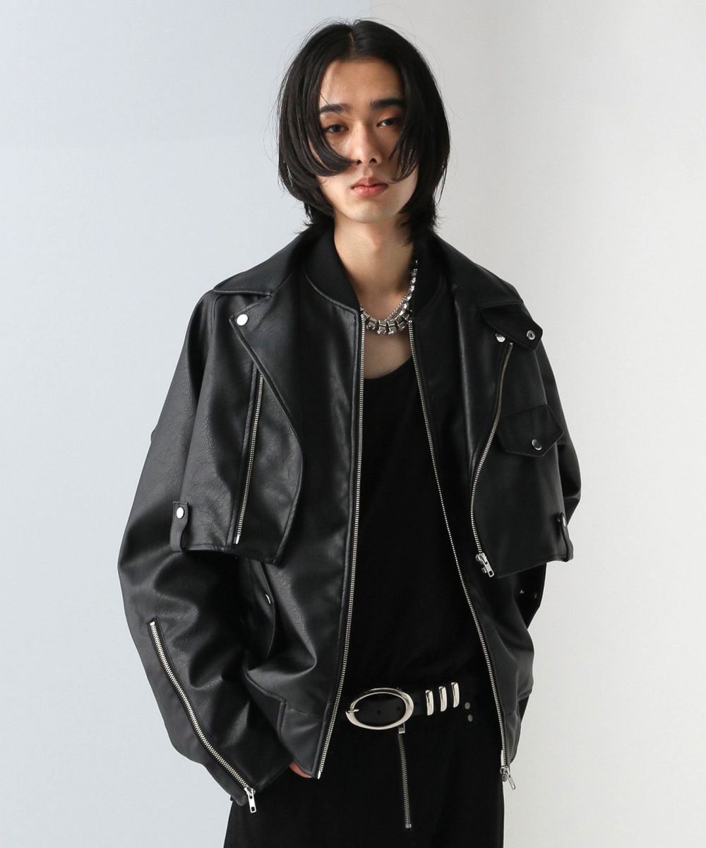 【UNDERGROUND MODE】皮革2WAY袖可拆立領夾克外套 –尺碼 S